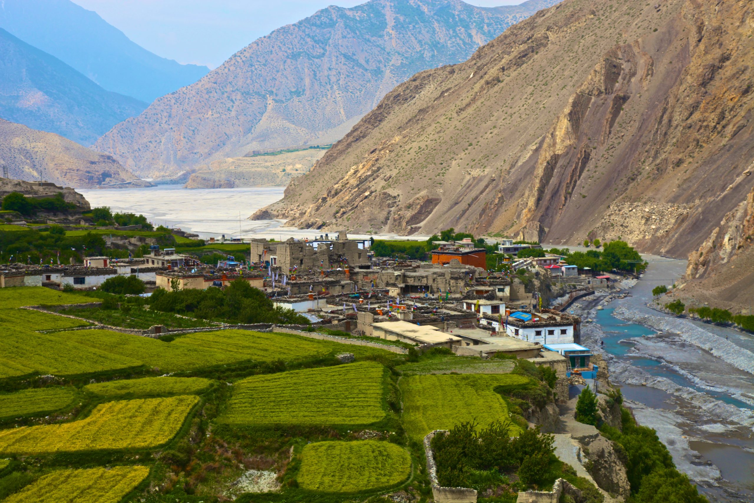 We will drive from Pokhara to Jomsom (about 170 km, 8-9 hours’ drive) on our luxurious vehicle. The journey takes you through the beautiful Kali Gandaki Gorge, the deepest gorge in the world, with views of Annapurna and Dhaulagiri ranges. We will Arrive in Jomsom, the administrative center of Mustang, and check into your hotel. We will explore the town and visit the local market.